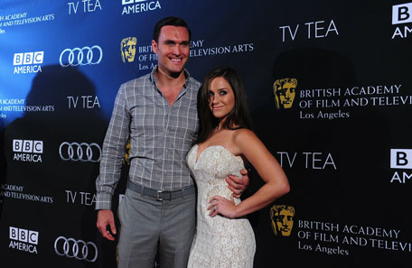 Actor Owain yeoman and date pose on arrival for the The British Academy of Film and Television Arts (BAFTA) Los Angeles TV Tea 2013 in Los Angeles. (AFP)