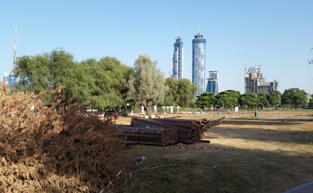 The wall is located halfway down the park, where the construction zone ends, and runs between Al Wasl Road and Sheikh Zayed Road.