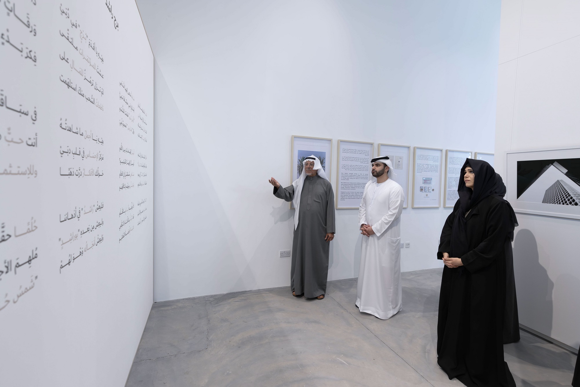 H.H. Sheikh Mansoor bin Mohammed bin Rashid Al Maktoum, Chairman of the Dubai Sports Council, in the presence of H.H. Sheikha Latifa bint Mohammed bin Rashid Al Maktoum, Chairperson of Dubai Culture and Arts Authority (Dubai Culture), inaugurated the Burj Rashid Exhibition at the Al Safa Art & Design Library.