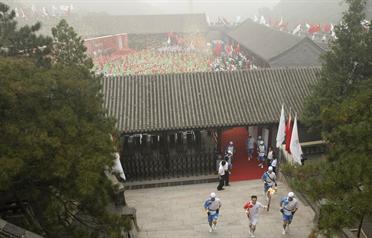 The torch was paraded along the ramparts of the Great Wall, which are wide enough for five horses.