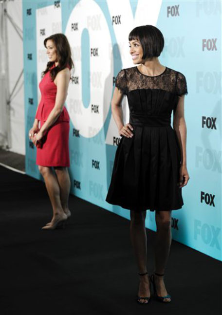 Actresses Michaela Conlin, left, and Tamara Taylor from "Bones" attend the FOX network upfront presentation party at Wollman Rink, Monday, May 14, 2012 in New York. (AP)