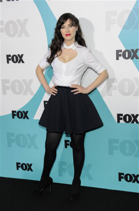 Actress Zooey Deschanel from "New Girl" attends the FOX network upfront presentation party at Wollman Rink, Monday, May 14, 2012 in New York. (AP)