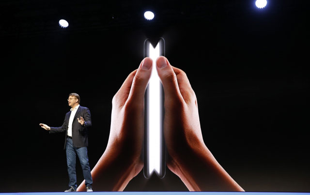 Senior vice president of mobile product marketing Justin Denison pulled a prototype foldable smartphone from a suit jacket inner pocket at a Samsung developer conference in San Francisco, saying the company will be ready to begin mass producing the screens in coming months.