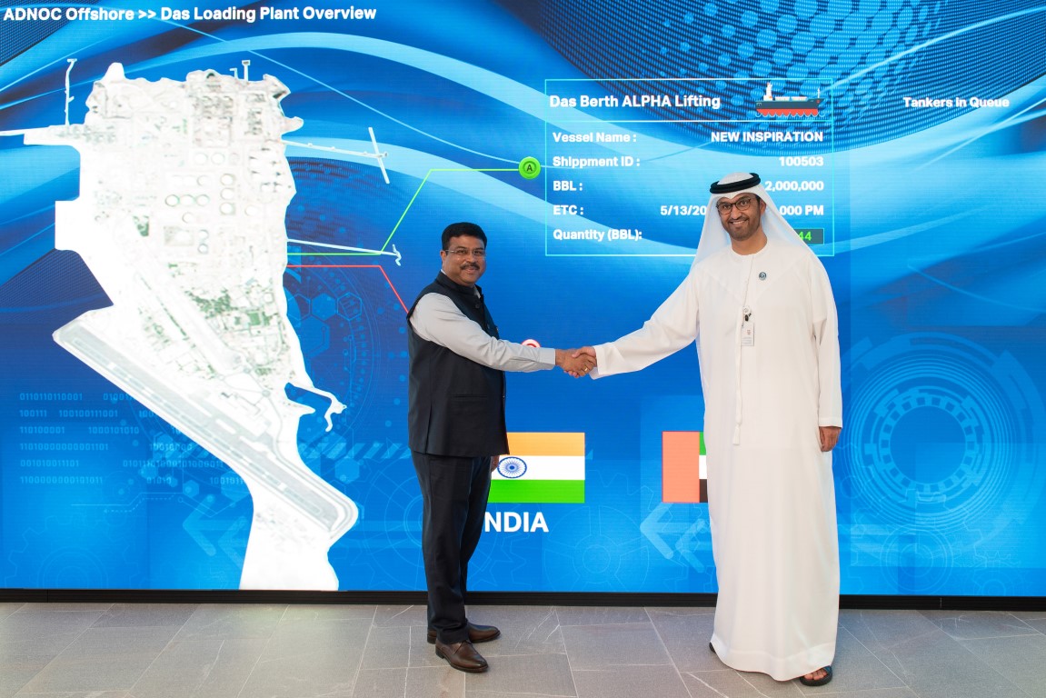 The loading, of approximately 2 million barrels of ADNOC crude oil, was witnessed by Dr. Sultan bin Ahmad Sultan Al Jaber, Minister of State and ADNOC Group CEO, and Dharmendra Pradhan, Indian Minister for Petroleum and Natural Gas, at a ceremony in Abu Dhabi.