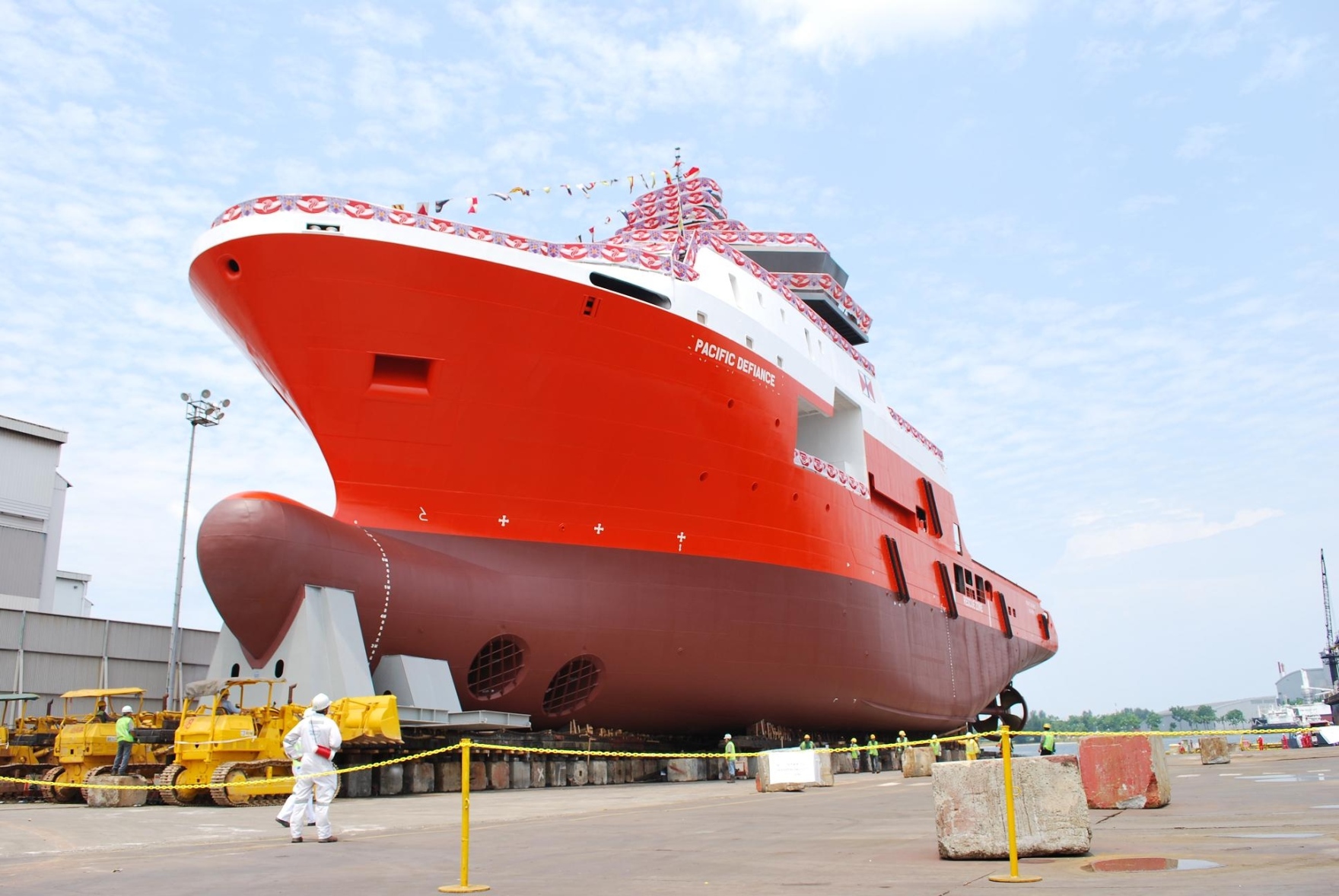 The ship 'Pacific Defiance' built in Singapore for Swire Pacific.