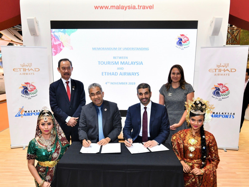 Etihad Airways, the national airline of the United Arab Emirates, today announced a partnership with Tourism Malaysia to attract visitors from Europe and the Middle East to Malaysia, via the airline’s Abu Dhabi hub. The agreement was signed at the World Travel Market in London, attended by representatives from both organisations and trade partners.