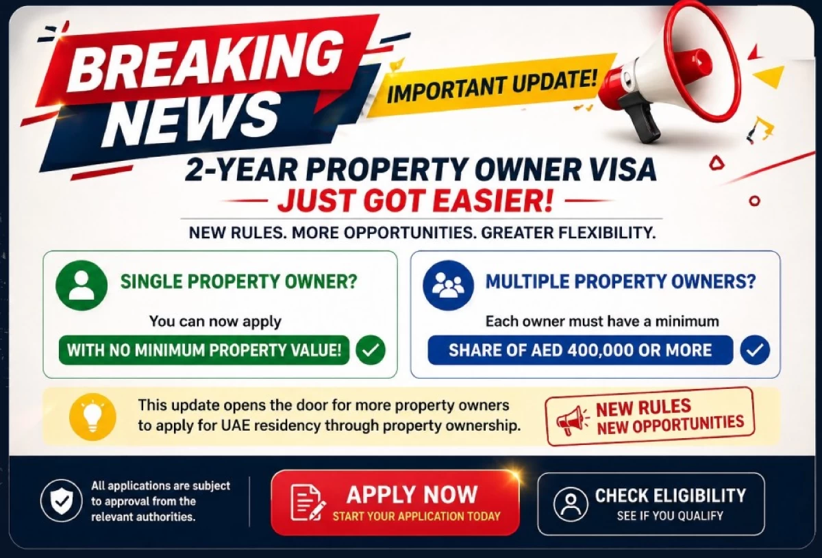 According to the amended conditions, the minimum property value requirement for an individual investor — previously set at AED 750,000 — has been abolished, provided that the investor is the sole owner of the property.