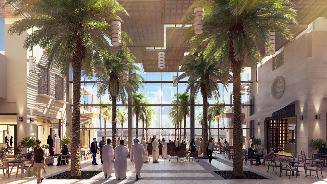 Kalba Waterfront takes inspiration from Sharjah’s traditional souks, marrying internal public streets with contemporary architectural language and connecting visitors with the surrounding waterfront. The mall will feature 86 retail outlets including a wide variety of dining options, a choice of top fashion brands for all members of the family, and well-known supermarket chains, as well as a large indoor dining area, a children's play area, a family entertainment centre, and a park surrounding the lagoon.