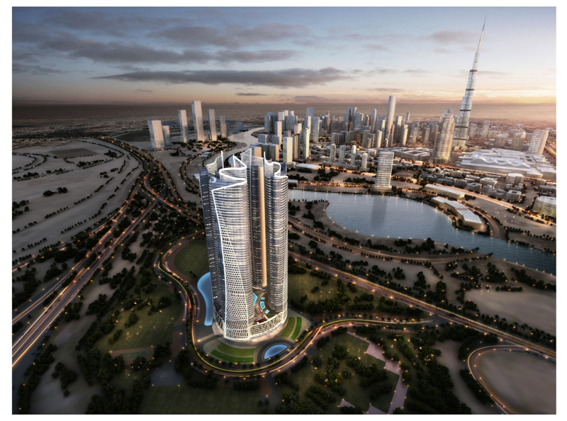 The four tower project, with each tower rising over 250 metres, will comprise 540 room Paramount Hotel & Residences and over 1,400 serviced apartments in Damac Maison.