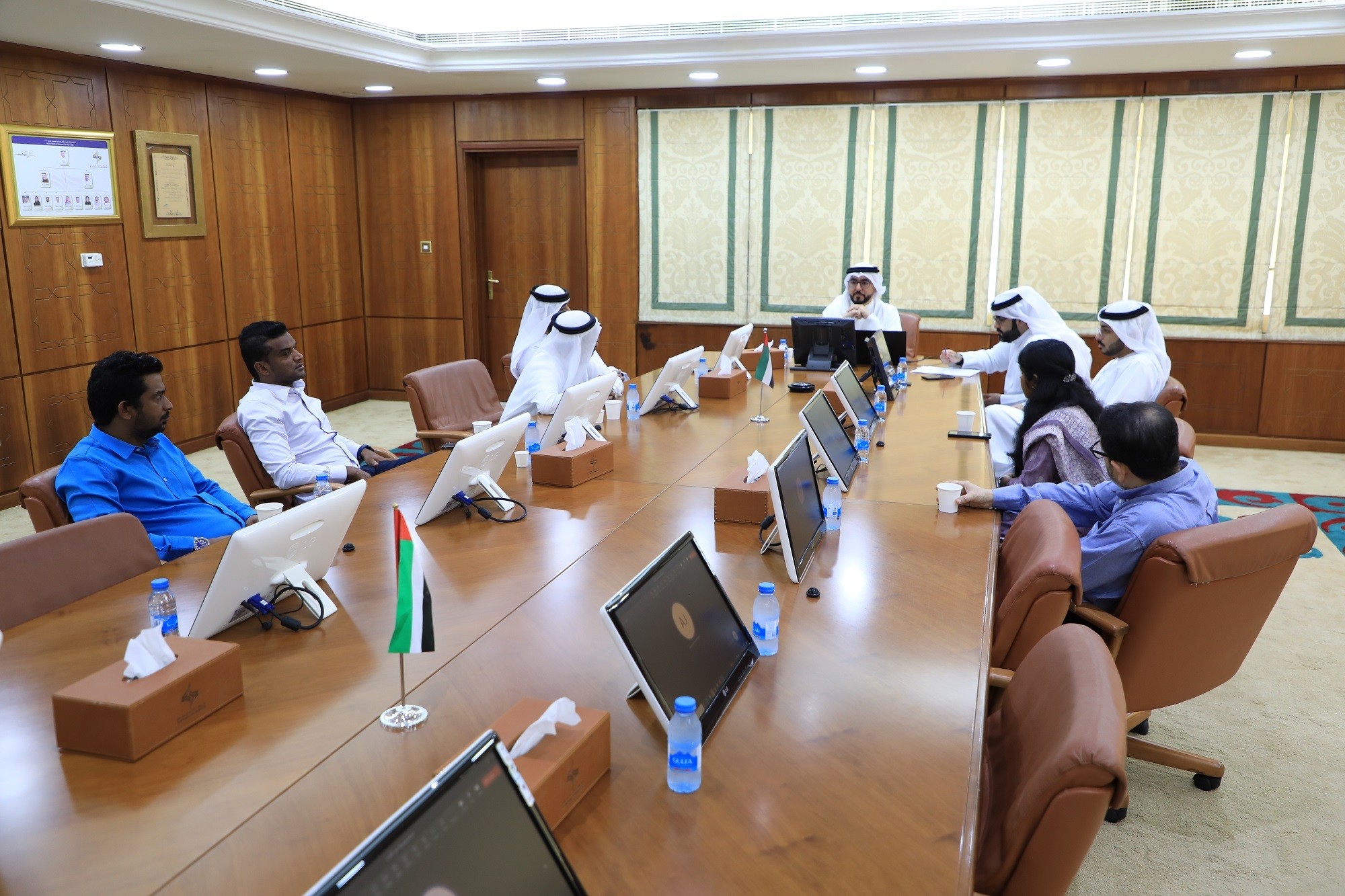 The attendees were briefed on the services provided by the Ajman Chamber, including the "Foras" platform and the tools it provides for discovering export opportunities in all countries of the world, as well as the "Eshaar" platform that aims to enhance communication between the Ajman Chamber and its members from the private sector establishments by presenting ideas and proposals.