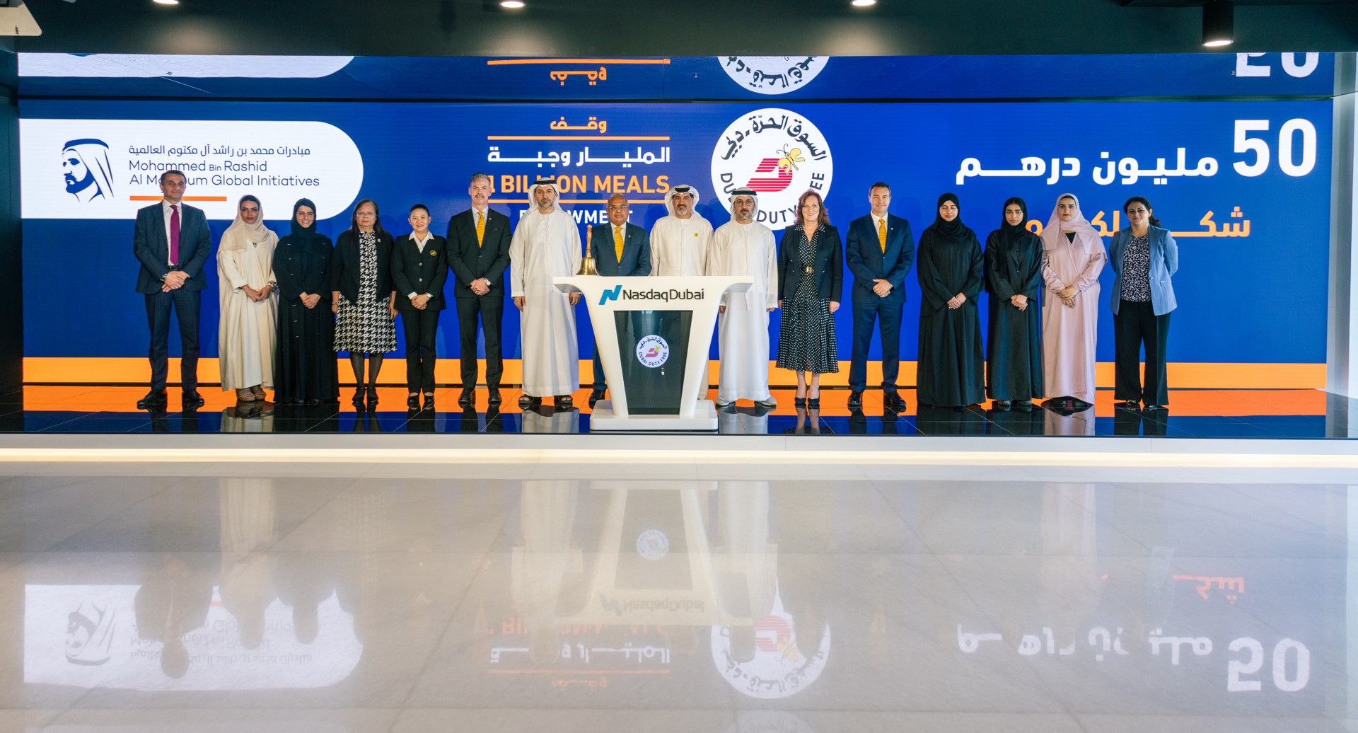 In collaboration with Nasdaq Dubai, Dubai Duty Free rang the market opening bell today to mark its support of “1 Billion Meals Endowment” campaign, launched by His Highness Sheikh Mohammed bin Rashid Al Maktoum, Vice President, Prime Minister, and Ruler of Dubai, to provide a sustainable food safety net for underprivileged populations and positively impact the lives of millions of people around the world.