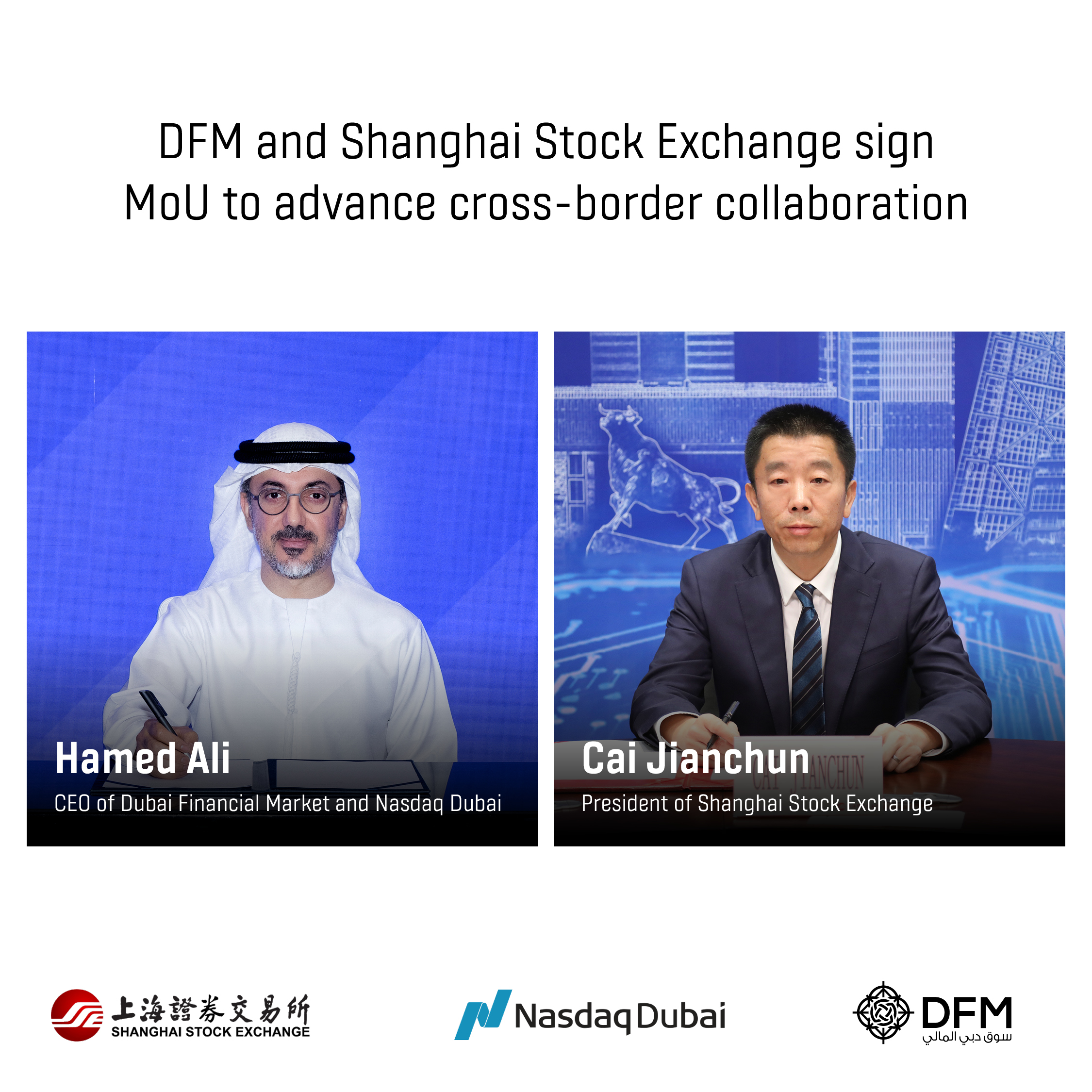 As part of the strategic alignment to meet the evolving needs of both market participants, DFM and Shanghai Stock Exchange will jointly explore to develop products, introduce companies and issuers to the advantages of each market and provide them with access to growth opportunities and services.
