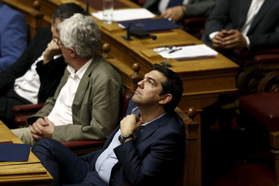 Greek Prime Minister Alexis Tsipras looks on during a parliamentary session in Athens, Greece. (Reuters)