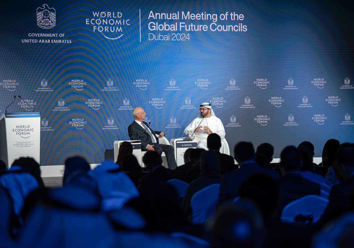 In the presence of H.H. Sheikh Mansoor bin Mohammed bin Rashid Al Maktoum, Chairman of the Dubai Ports and Borders Security Council, and H.H. Sheikha Latifa bint Mohammed bin Rashid Al Maktoum, Chairperson of Dubai Culture and Arts Authority, Mohammed Abdullah Al Gergawi, Minister of Cabinet Affairs and Co-Chair of the Global Future Councils, and Professor Klaus Schwab, Founder and chairman of the board of trustees of the World Economic Forum (WEF), today opened the 2024 Annual Meeting of Global Future Councils (AMGFC24).