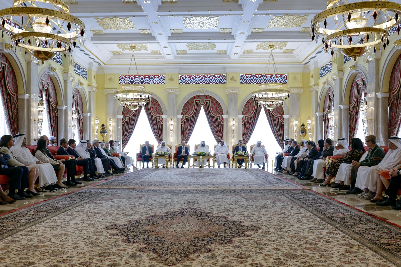 HH Sheikh Mohammed welcomed senior officials of the banking industry including John Dugan, Chair of Citigroup and President of the conference, at Za’abeel Palace.