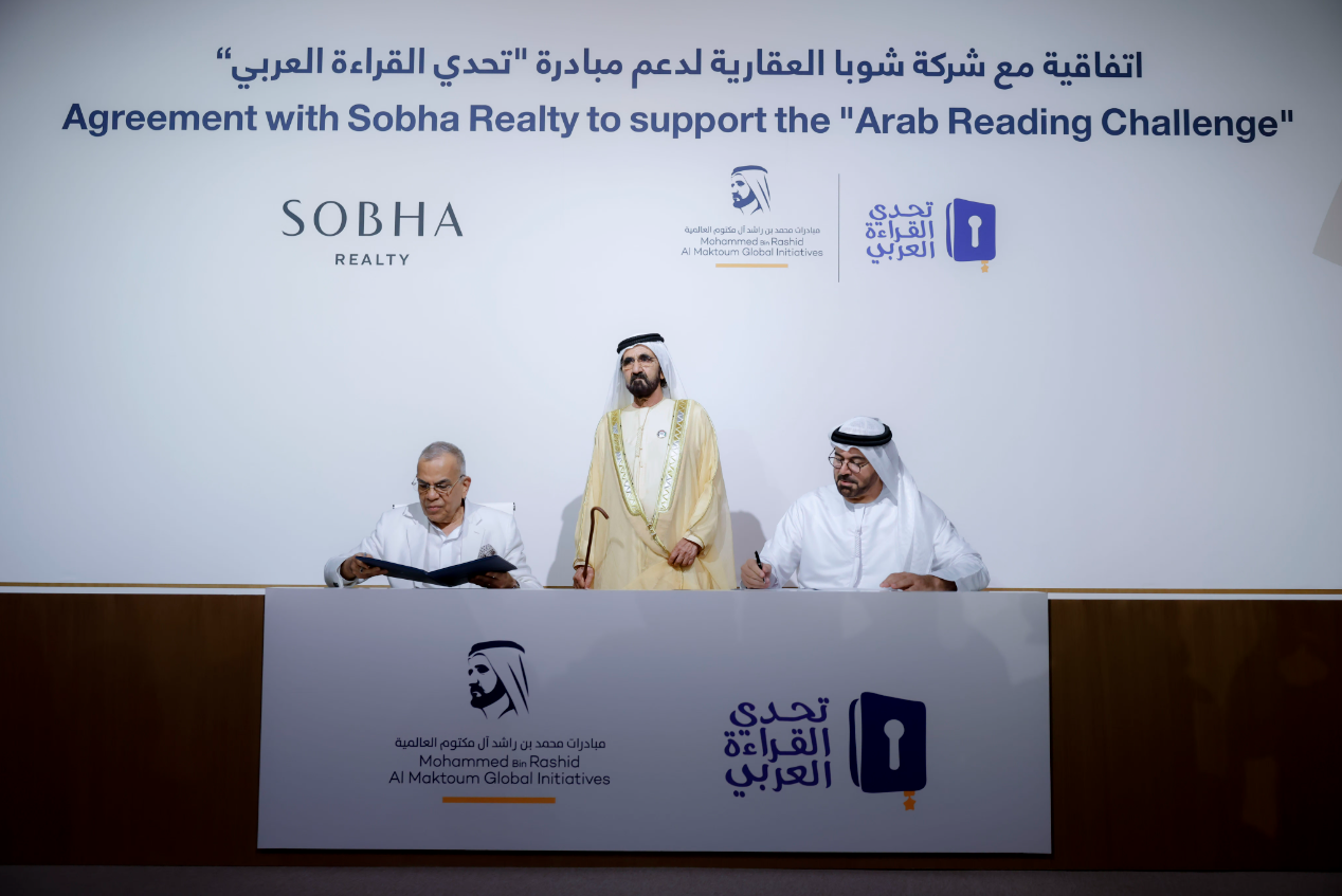 In the presence of His Highness Sheikh Mohammed bin Rashid Al Maktoum, Vice President and Prime Minister of the UAE and Ruler of Dubai, Sobha Realty announced a contribution of AED500 million for an endowment supporting the Arab Reading Challenge initiative.