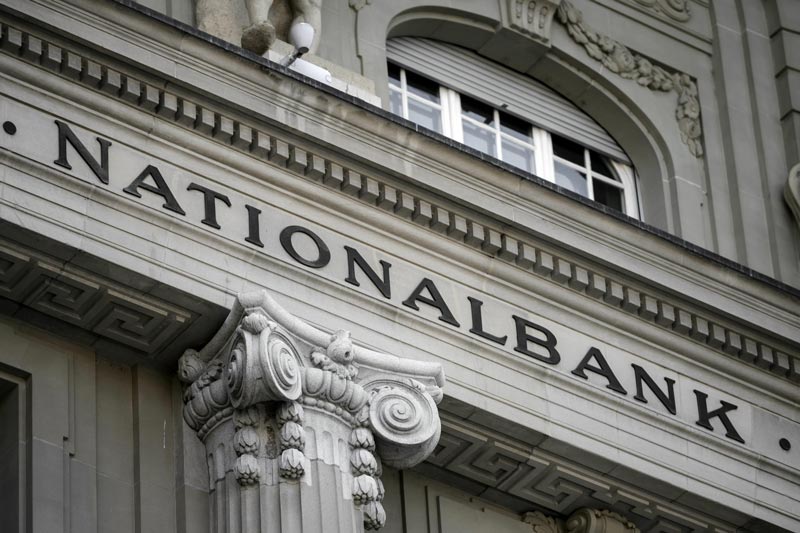 A file photo taken on October 14, 2014 shows a sign at the Swiss National Bank headquarters in the Swiss capital Bern. (AFP)