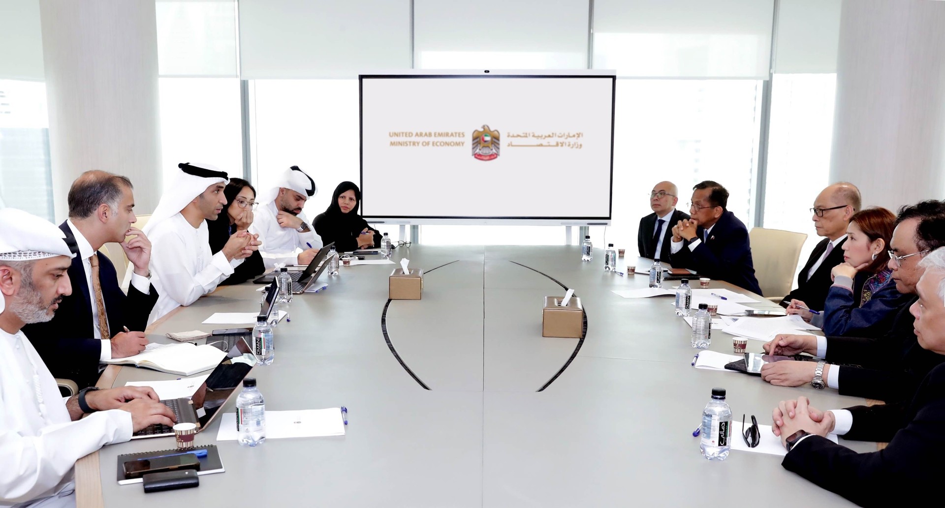 Dr. Thani bin Ahmed Al Zeyoudi, Minister of State for Foreign Trade, today received a high-level delegation from the Philippines at the headquarters of the Ministry of Economy in Dubai.