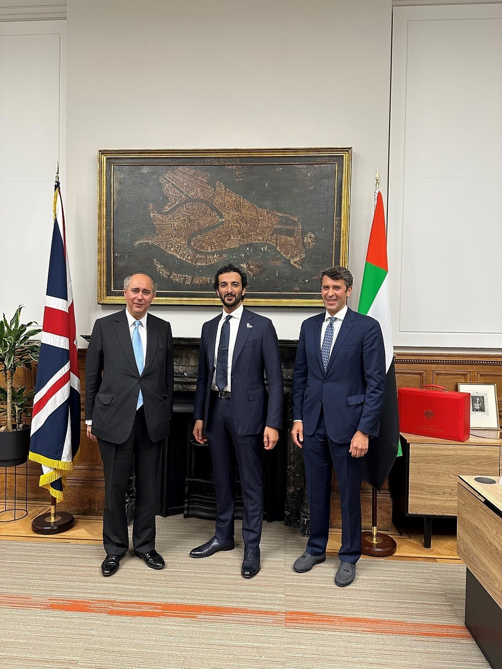Abdullah Bin Touq Al Marri, Minister of Economy, held a number of bilateral meetings, including one with Lord Dominic Johnson, Minister of State in the Department for Business and Trade, UK, on the sidelines of his participation in the 13th edition of City Week Forum 2023, which was held yesterday 24 till 26 April, in London.