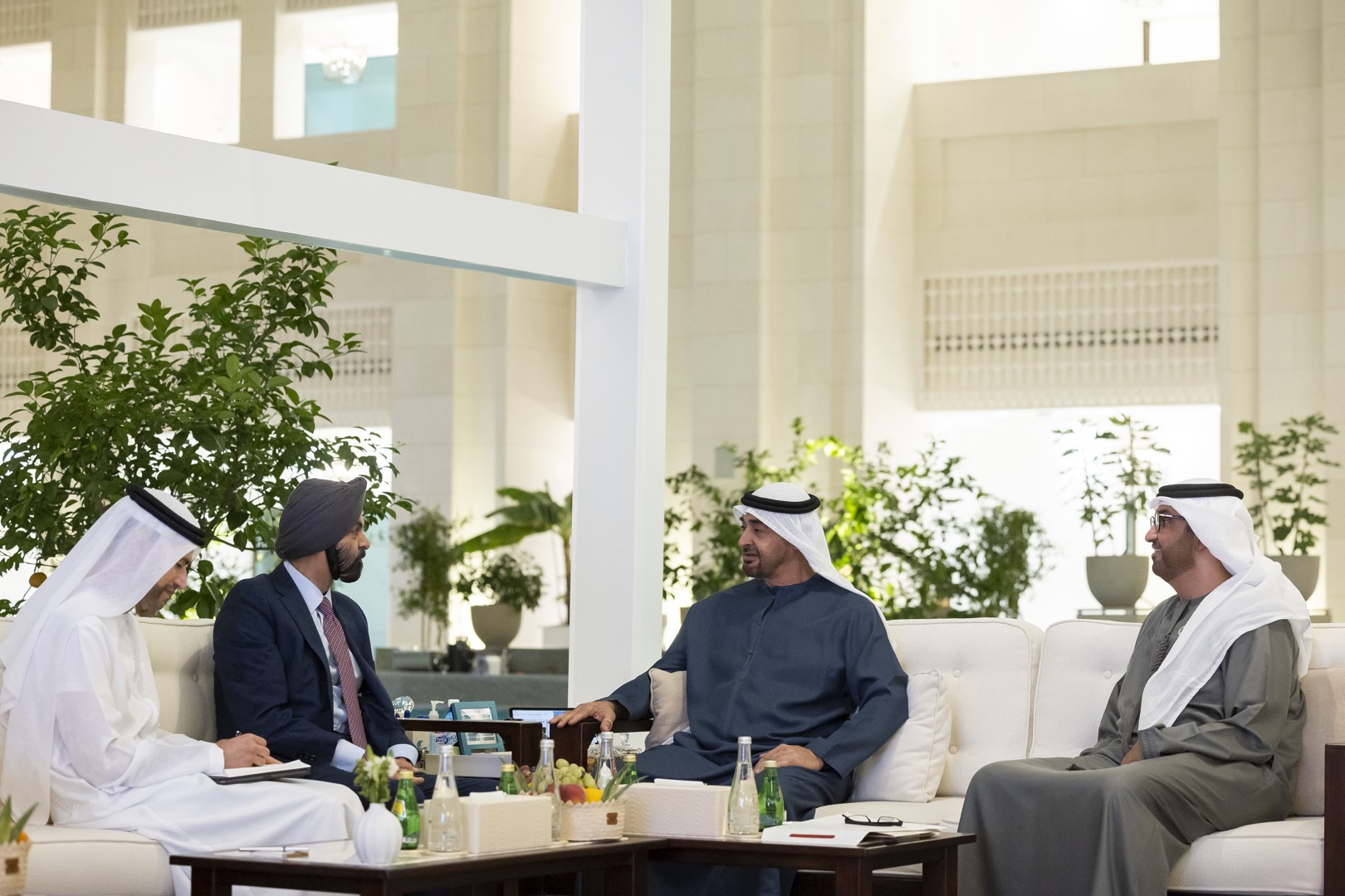 President His Highness Sheikh Mohamed bin Zayed Al Nahyan today received Ajay Banga, President of the World Bank Group, at Qasr Al Shati in Abu Dhabi.