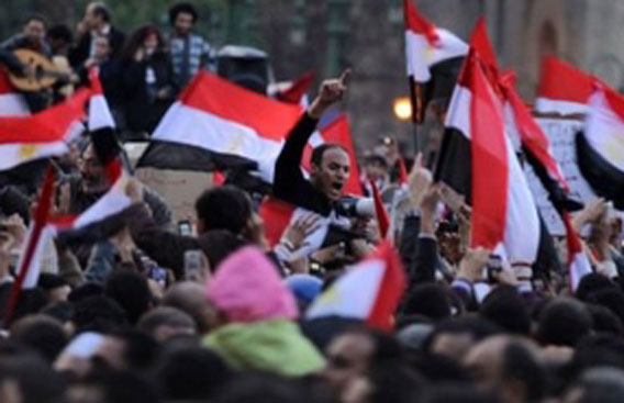 Egyptian anti-government demonstrators wave their national flag and chant slogans at Cairo's Tahrir Square. Rights watchdog Amnesty International said Sunday that an Egyptian executive of the Google software giant who was snatched from the street during anti-government riots faces a serious risk of torture. (AFP)