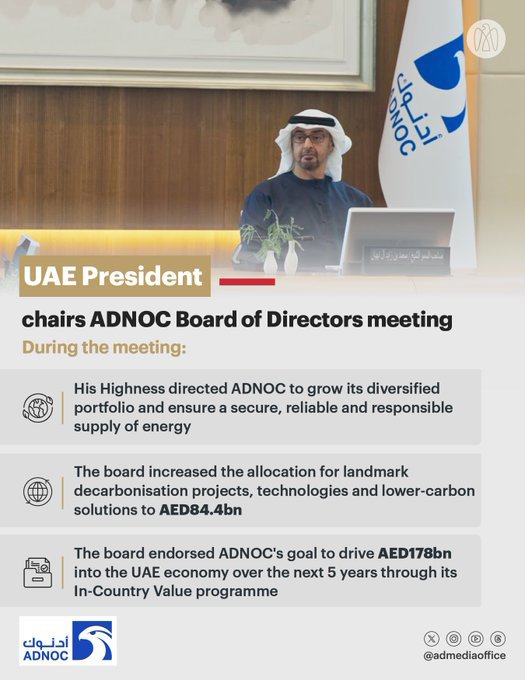 UAE President His Highness Sheikh Mohamed bin Zayed Al Nahyan has presided over the annual meeting of the ADNOC Board of Directors in his capacity as its Chairman.