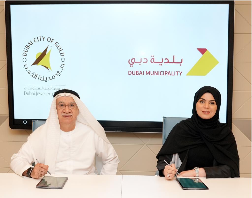 Eng. Alia Al Harmoodi, Acting CEO of the Environment, Health and Safety Agency at Dubai Municipality, and Muhammed Tawfiq Muhammed Taher Abdullah Al Muhtadi, General Manager of Dubai Gold and Jewellery Group were present at the signing of the MoU.