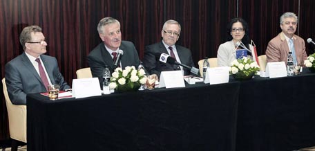 (From right to left) Piotr Ziemann, Polish Association of Meat Producers, Bozena Wroblewska, Polish Chamber of Commerce Promotion Centre, Andrzej Arendarski, Chairman Polish Chamber of Commerce, Andrzej Lysiak, Consul - Polish Embassy Abu Dhabi, Mieczyslaw Walkowiak, Vice Chairman of Sokolow.