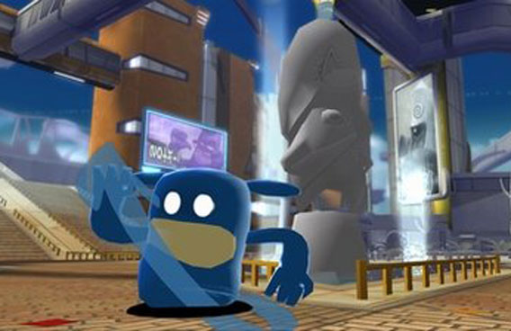 In this video game image released by THQ, a creature tries to restore color to a black-and-white world in 'de Blob 2'. (AP)