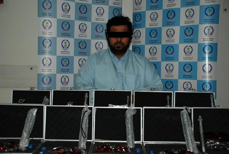 Sharjah Police arrested a Yemini national for selling equipment that emits a dangerous blue laser as well as using BlackBerry to promote his illegal activity.