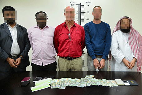 Colonel Borshid said that the five suspects are identified as AR (64 years) and his son DR (37 years) of British nationality, who entered the country on a visit visa, in addition to another three suspects of Indian nationality namely BS (36 years), a general manager at a medical clinic; MH (56 years), the head of marketing at a perfume company; and TK a household appliance salesman.