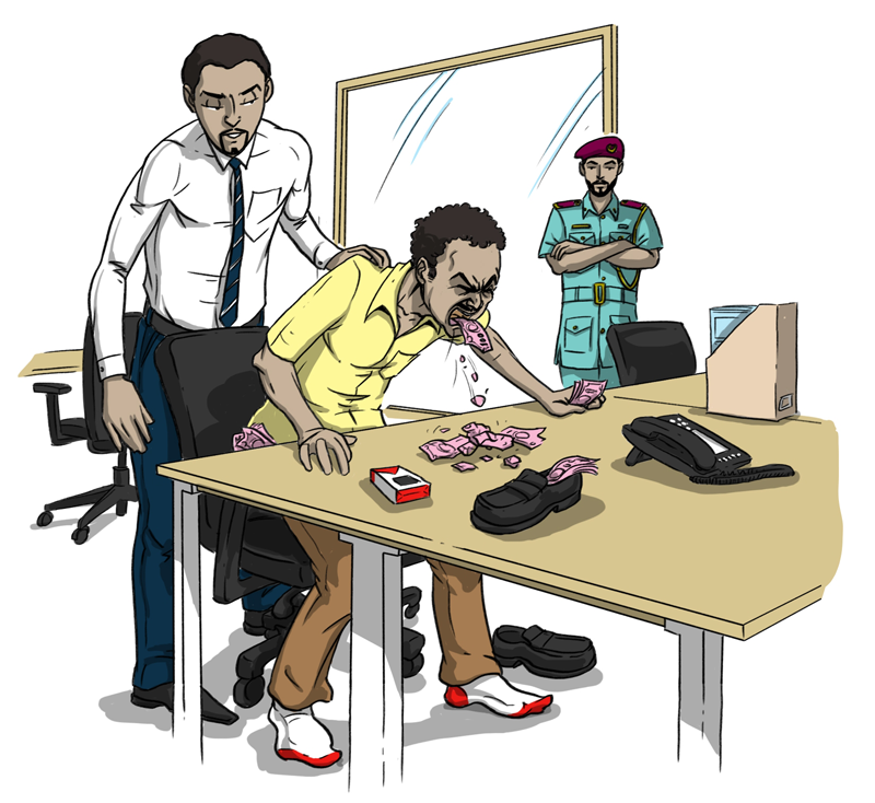 When he was held for shop-lifting the man had with him fake Dh100 notes. Realising that he would be found with them, before the police could arrive, he swallowed the notes.
