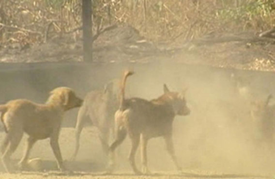 Hungry wild dogs attacked a barn in the cattle market in the eastern oasis town of Al Ain and killed 35 sheep worth nearly Dh30,000.
