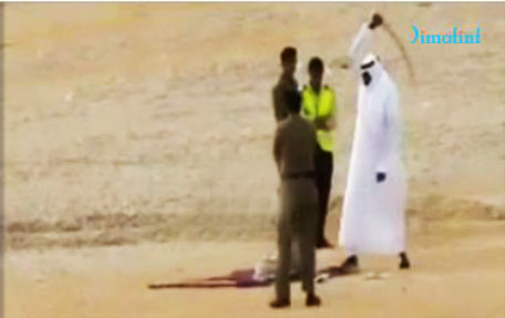 The executioner, a tall man wearing traditional Saudi dishdasha (gown) and ghutra (head cover), then wiped blood off his sword with a piece of cloth after the beheading before waling away from the rapist’s headless body.