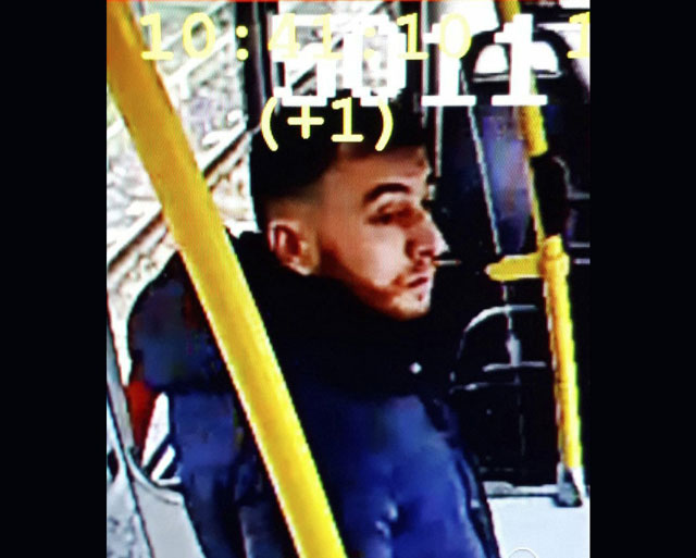 Police issued a photo of a bearded Tanis aboard a tram in a blue hooded top.