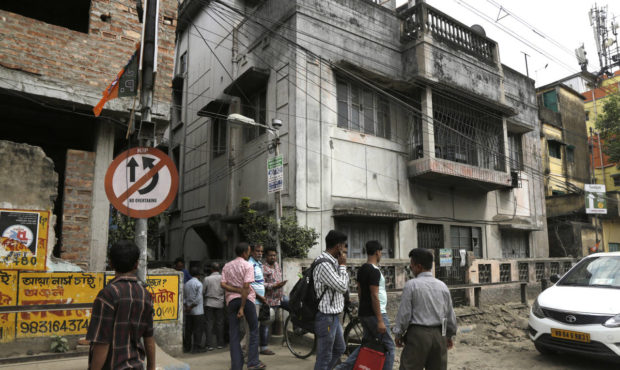 Indians gather outside the house where 46-year-old Subhabrata Majumdar had allegedly kept his mother's body in a freezer for almost three years while collecting her monthly pension payments in Kolkata, India. (AP)
