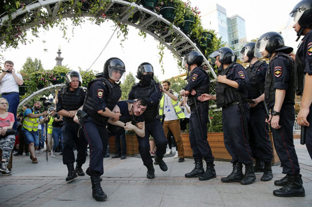 Russian police rounded up more than 1,000 people in Moscow on Saturday in one of the biggest crackdowns of recent time decrying President Vladimir Putin’s tight grip on power.