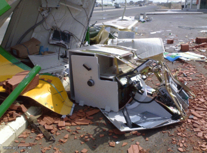 Police said the four, all in their 30s, put up what they described as fierce resistance when they tried to arrest them just after extracting the massive machine out of the wall of a bank in the capital Riyadh and trying to steal its contents.
