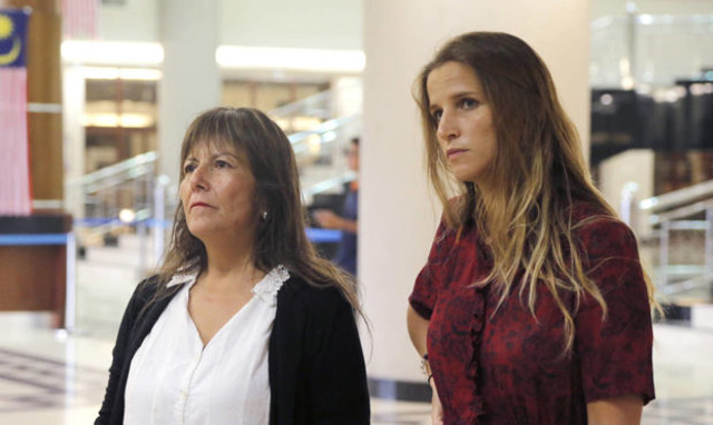 Fernando Candia's mother, left, and Felipe Osiadacz's girlfriend arrives at Kuala Lumpur High Court in Kuala Lumpur, Malaysia. (AP)