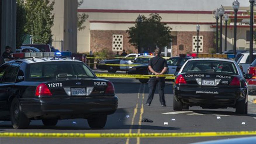 Sacramento Police said in a series of tweets the shooting took place in a parking lot near a baseball field on the southern edge of campus, and the suspect was described as a man wearing a white shirt and beige cargo shorts.