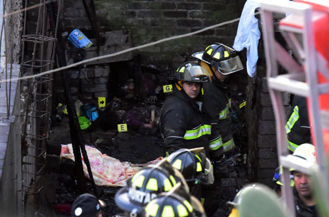 Graphic content / Firefighters work at the scene of a fire in which seven children died burned in Iztalapala east of Mexico City. (AFP)