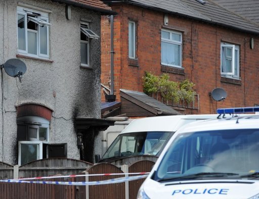 A fire-damaged house in which six children died is pictured in Derby, central England. (AFP)