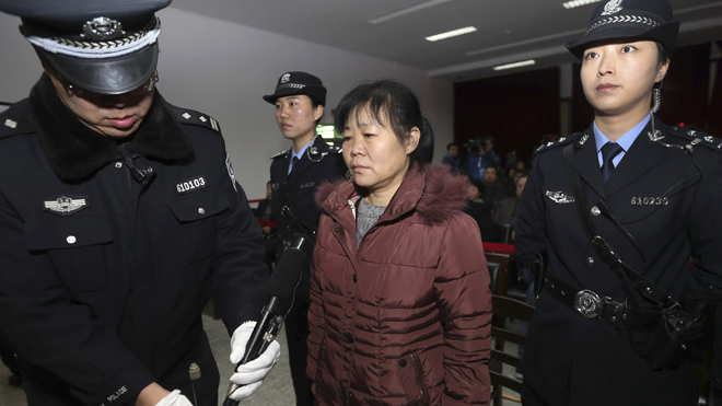 Zhang Shuxia, an obstetrician involved in baby trafficking, stands trial in Weinan Intermediate People's Court in Weinan, Shaanxi province. (Reuters)