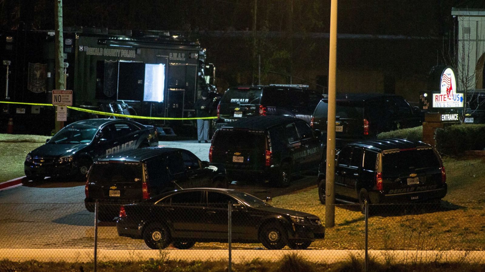 Police work the scene of a standoff at the Rite4Us Inn and Suites on Snapfinger Woods Drive. (AP)