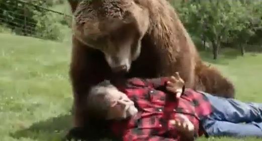 Twenty-nine-year-old Dustin Gray said the bear lunged at him and his 11-month-old puppy on Monday. The 6-foot-5 man tells the Bangor Daily News that he punched and kicked the bear until it fled and knocked him over in the process.