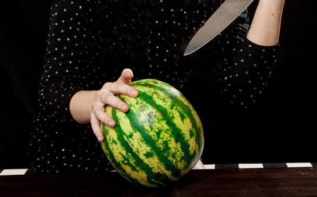 She returned from the police station and found a watermelon with a large butcher's knife stabbed through it on the table, interpreting it as a threat, Campbell said. The woman reported that Cervellino then entered the kitchen without speaking and began chopping up the fruit.