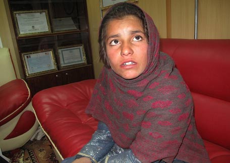 Spozhmai, 10, who was about to be used by the Taliban as a suicide bomber, talks as she sits at a police office in Helmand province. (AFP)