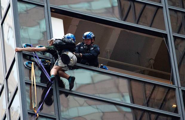Rogata used suction cups, a harness and ropes to climb from the fifth floor to the 21st floor when Mr Trump was the Republican presidential nominee.