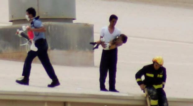 A survivor of a fire receives medical attention after a fire took hold of the Villaggio Mall, in Doha's west end, in the Qatari capital of Doha Monday May 28, 2012. Qatar's Interior Ministry said 13 children were among 19 people killed in a fire that broke out at one of the Gulf state's fanciest shopping mall on Monday. The Villaggio opened in 2006 and is one of Qatar's most popular shopping and amusement destinations. It includes an ice skating rink and indoor Venice-style gondola rides. (AP)