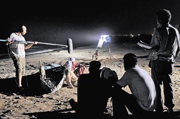 A film being shot on location in Khorfakkan on the UAE's east coast. Resident Indian businessmen are diverting investments into films because of higher returns. (KHALED NOUFAL)